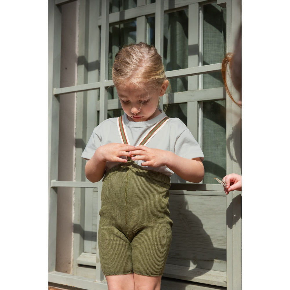 Upplev bekvämligheten och den charmiga designen med Silly Silas Olive Striped Shorty Tights Med Seler. Dessa shorts är perfekta för småbarn, tillverkade av ett mjukt och hållbart material med snygga olivgröna ränder. Perfekt passform med praktiska justerbara seler som garanterar att de sitter bekvämt oavsett aktivitet. Lätta att sköta och idealiska för både lek och fest.