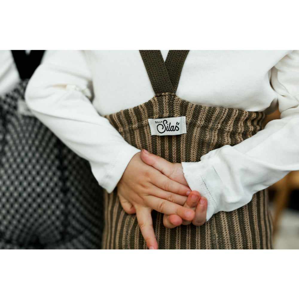 Upptäck de charmiga Silly Silas Seaweed Brown X Peanut Striped Special Footed Strumpbyxorna, en specialutgåva som lyfter varje barns garderob. Tillverkade av mjuk bomull, dessa strumpbyxor är både bekväma och hållbara. Den unika designen med bruna och beige randiga mönster kombinerar stil med funktionalitet, inklusive praktiska hängslen som säkerställer en perfekt passform. Idealiska för lek och vardagsäventyr, de är lätta att sköta och kan maskintvättas. Material: 100% ekologisk bomull Certifieringar: OEKO-TEX® Standard 100 i klass 1, GOTS Organic