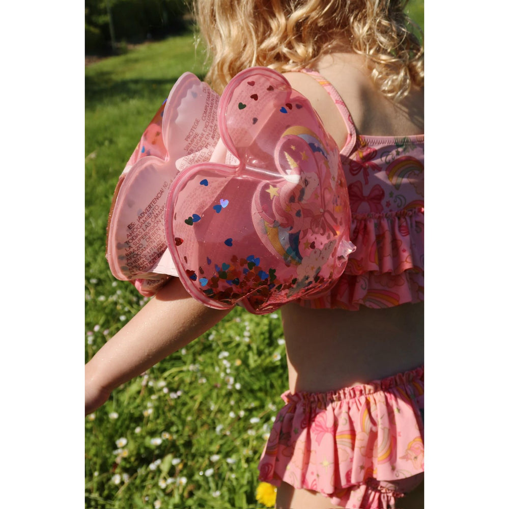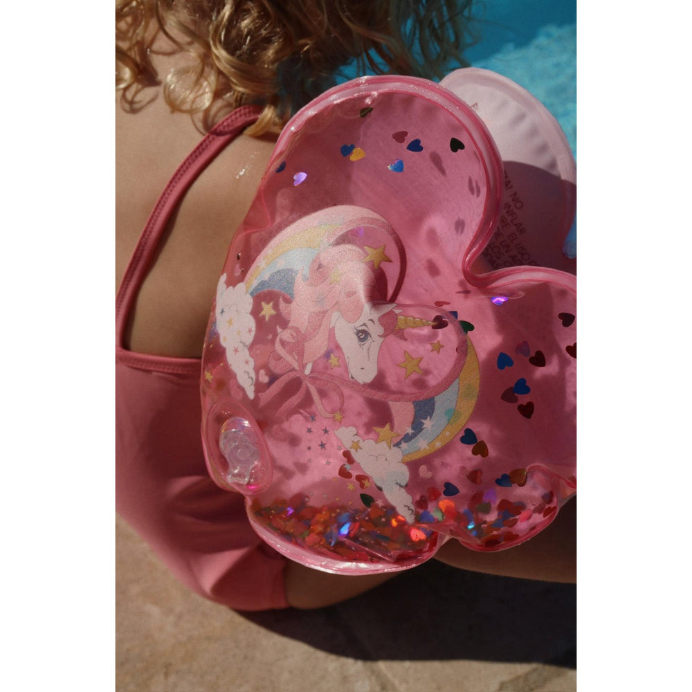 Introducera barnet till glädjen med vattenlekar med våra säkra och charmiga Konges Sløjd Horn Stars vattenvingar. Dessa uppblåsbara vattenvingar är inte bara hjärtformade och genomskinliga vilket gör dem till en estetisk frestelse för barnen, men de är också utformade med barns säkerhet i åtanke. Tillverkade i hållbart 100% polyvinylklorid och passande för barn från 3 år som väger mellan 19 kg till 30 kg.