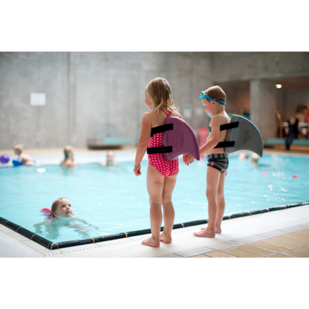 Upptäck glädjen och tryggheten med SwimFin i ljuslila, en innovativ simhjälp som är perfekt anpassad för barn som lär sig simma. SwimFin är designad för att erbjuda en säker simupplevelse med dess unika hajfensform som syns väl i vattnet och ger utmärkt flytkraft ovanför vattenytan.