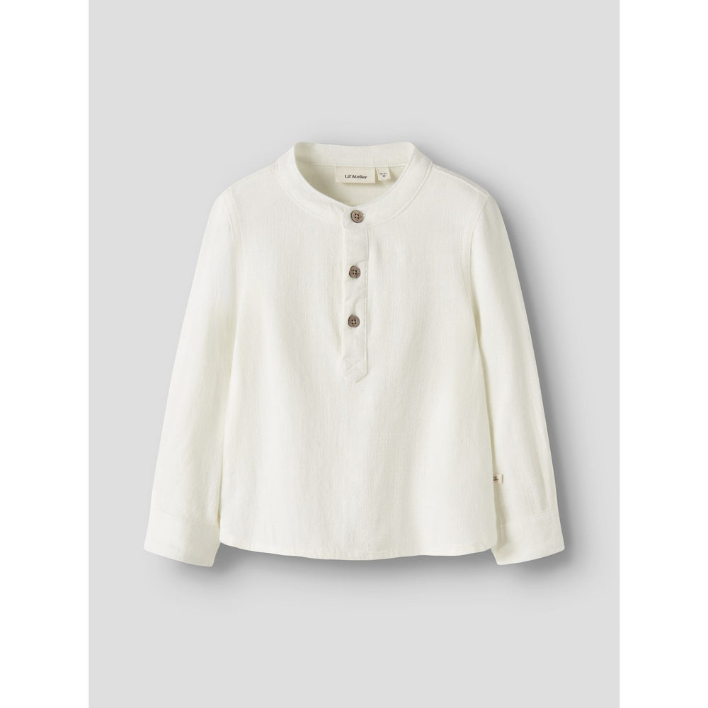 Den lösa passformen och långa ärmar säkerställer maximal komfort och rörelsefrihet för ditt barn. Med praktisk knapplåsning och en diskret etikett som extra detalj, erbjuder denna skjorta både funktionalitet och stil. Den neutrala färgen, Coconut Milk, tillsammans med den klassiska farfarhalsen, gör den till en mångsidig del i barnets garderob. Skjortan är lätt att sköta om och passar perfekt ihop med andra plagg för en trendig och bekväm look. Ge ditt barn chansen att utforska sin stil med komfort och kvalité.