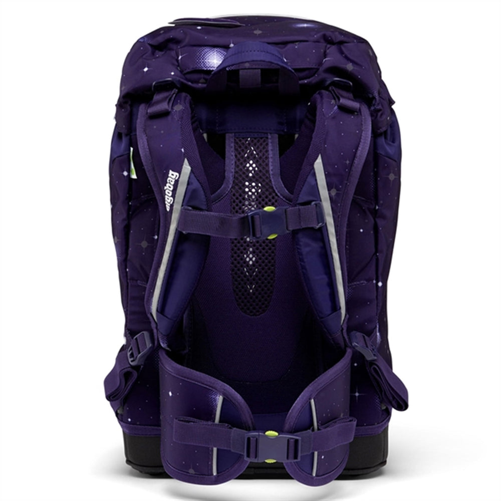 Supersmart och läcker prime school ryggsäck från Ergobag. Två klänningar medföljer, som kan bytas ut med hjälp av kardborreband och göra väskan lite annorlunda och personlig. Väskan kan justeras för att passa barn från ca 110-150 cm. Ergonomin är på topp på dessa skolryggsäckar, så de passar bra på skolbarn. De är inspirerade av ergonomin hos vandringsryggsäckar och bryr sig därför mycket om viktfördelningen. Väskan har breda bäckenfenor som flyttar väskans vikt från axlarna till det mer stabila bäckenområdet. Väskans aluminiumram gör det möjligt att justera väskan korrekt efter barnets längd. När det är korrekt justerat hjälper höftbältet till att säkerställa optimal viktfördelning och stöd för ryggen. Vadderingen på baksidan är andningsbar och sitter tätt runt ryggen, så den är bekväm att bära. Axelremmarna är vadderade och formade speciellt för barnens anatomi. Det finns en justerbar rem för att dra åt övre delen av bröstet och en annan runt midjan vid höftbältet. Inuti väskan finns en bra uppdelning av facken, där det finns plats för böckerna närmast bak. Framtill finns en ficka med plats för en vattenflaska och matlåda. Facken stängs med ett smart snörningssystem och ett magnetiskt spänne på utsidan. En riktigt fin skolryggsäck, där man har tänkt på hur väskan bärs och funktionaliteten.
