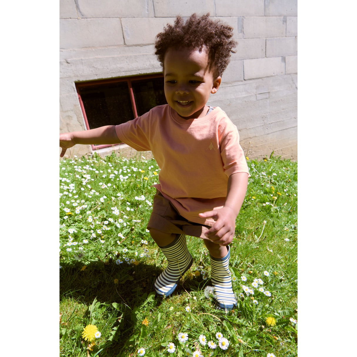 Upptäck Bundgaard Oceanic Stripe Charly High – en favorit bland barnens gummistövlar! Dessa stilrena stövlar är tillverkade av naturligt gummi och helt fria från skadliga kemikalier, vilket gör dem både säkra och miljövänliga för ditt barn. Med sin klassiska design och reflekterande detaljer är Charly inte bara praktisk utan också snygg och håller barnets fötter torra och väl synliga under alla väder. Dessutom är stöveln vattentät med ett flexibelt grepp som stödjer lekfulla äventyr i regn. Den breda passformen kombinerat med mjukt bomullsfoder och avtagbara innersulor i bomull försäkrar om maximal komfort och en ergonomisk passning. Charlys hållbara och flexibla design erbjuder en trygg och skön upplevelse vid varje användning, perfekt för allt från dagliga promenader till spännande utflykter i naturen.