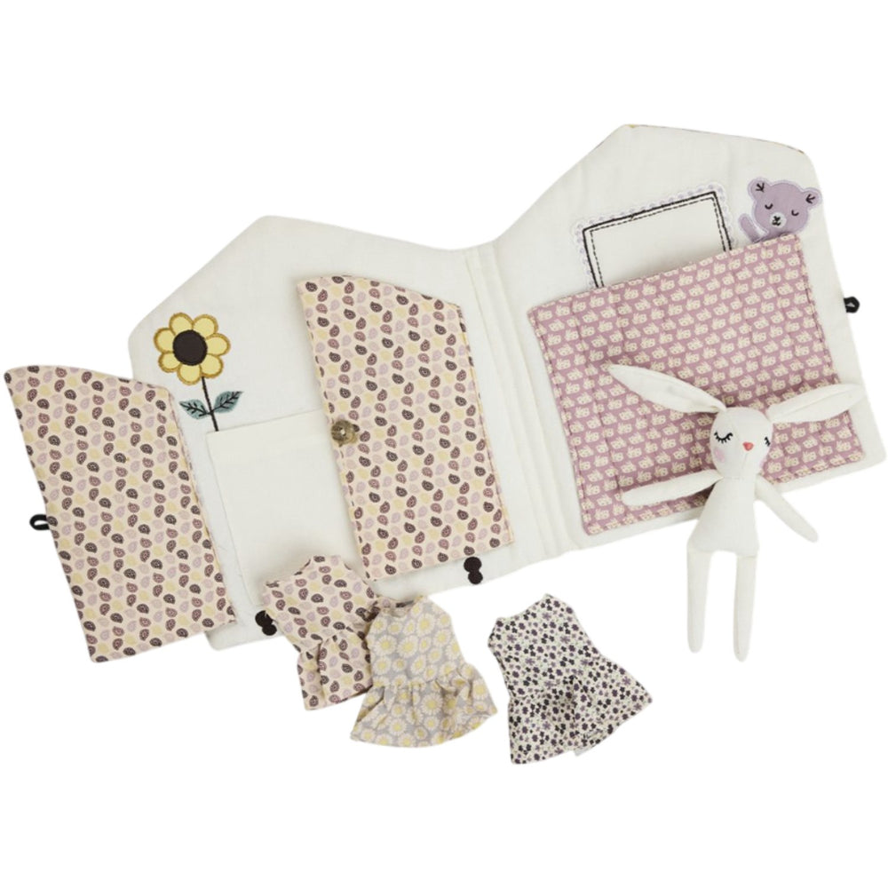 Gör lekstunden både rolig och utbildande med "Smallstuff Bedroom Tiny House Bok"! Denna charmiga tygbok är försedd med en söt kanin och är perfekt för små händer att utforska. Boken innehåller tre vackra klänningar som förvaras i en tydlig garderob, vilket uppmuntrar till rollspel och hjälper barnet att utveckla finmotorik.