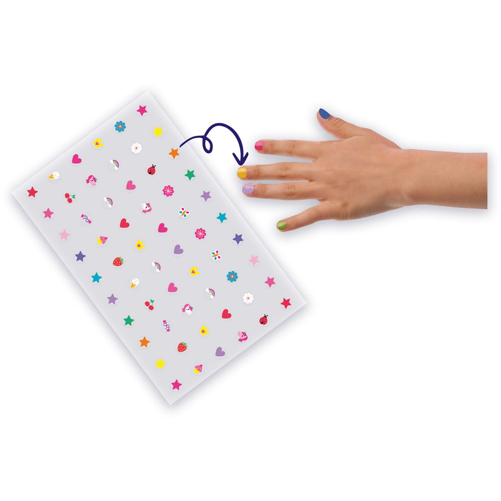 - Innehåll: Bioglitter, färger för nagellack, spruta, tratt, förvaringsflaskor, omrörare, överföringsark, svamp, instruktioner