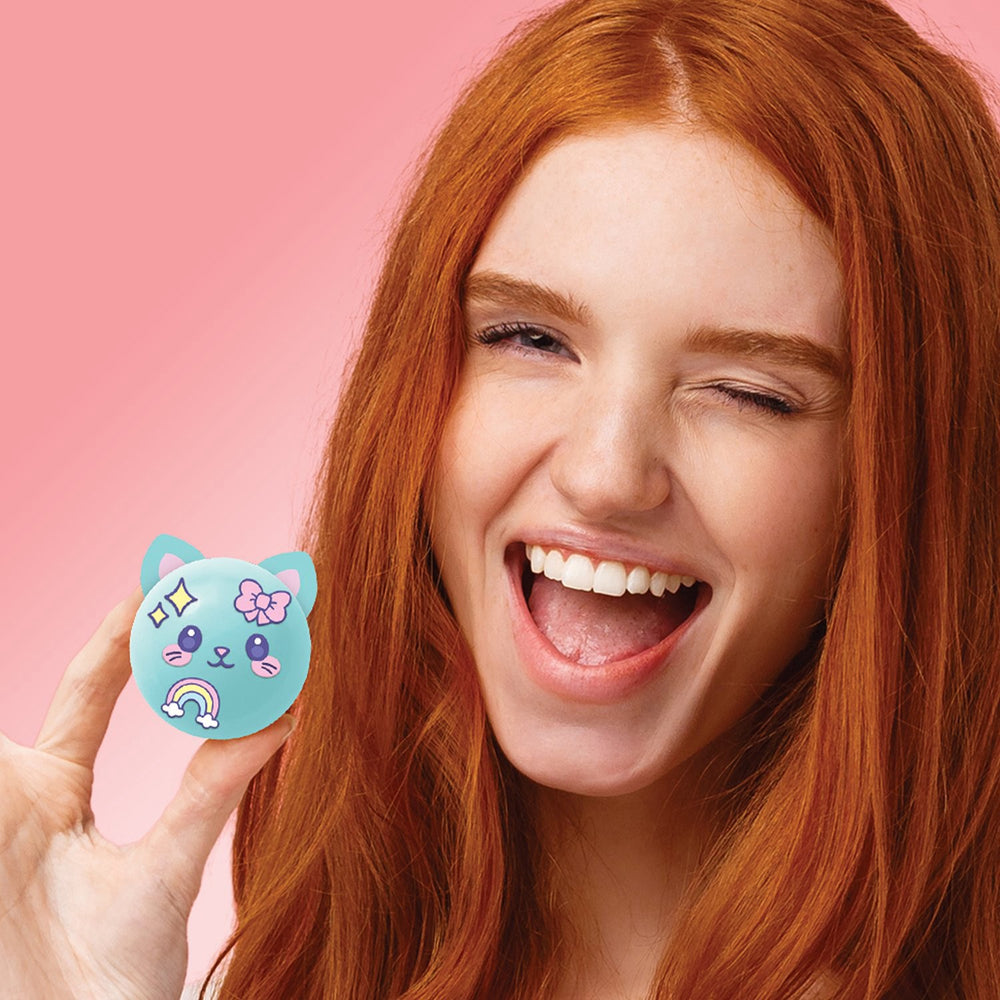 Kitet innehåller en blank bas som barnen själva kan använda för att blanda till sina egna färg- och doftkombinationer med hjälp av de medföljande parfymerade formarna. Välj mellan tre olika dofter och designa ditt läppbalsam precis som du vill ha det! Med de kreativa verktygen och det inbegripade klistermärkesarket är det enkelt att anpassa varje behållare till en liten konstverk.