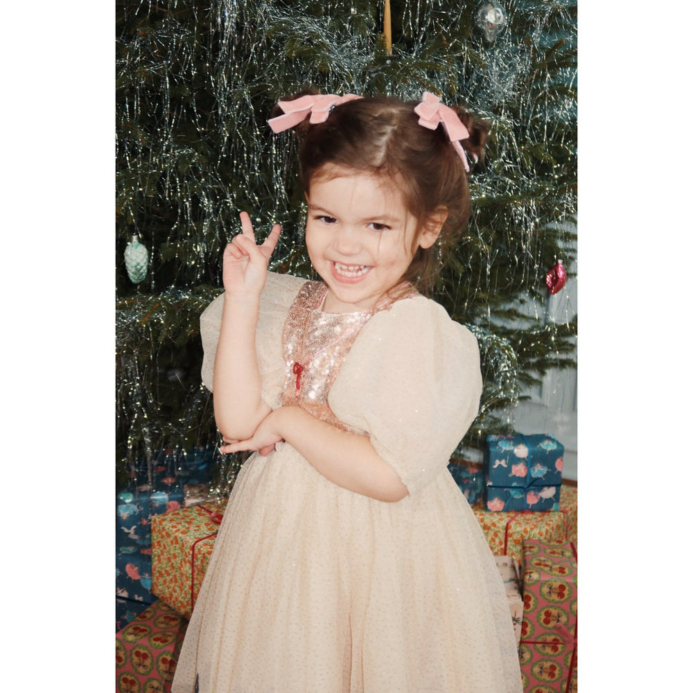 Smyckena kommer i en mjuk Mellow Rose och en livlig Rio Red-ton, kombinerat med en perlemorfärgad finish som fängslar ögat. Rekommenderad för barn över tre år, detta set kan bäras under födelsedagskalas, familjesammankomster eller till och med en dag på förskolan för en extra dos av stil.
