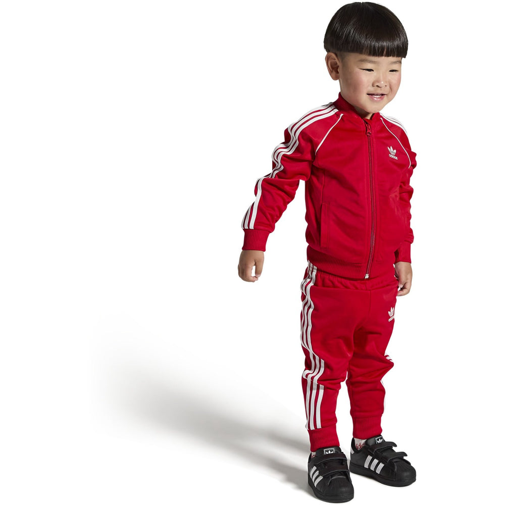 - Extra: Tandad 3-stripes, Superstar box-logotyp på plösen, Trefoil-logotyp på hälfliken.