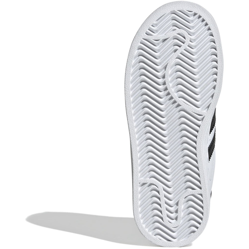 - Extra: Tandad 3-stripes, Superstar box-logotyp på plösen, Trefoil-logotyp på hälfliken.