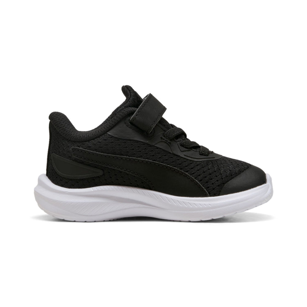 Upptäck Skyrocket 2 AC+ Inf – en särskilt designad sneaker från Puma som är perfekt för barns aktiva livsstil. Dessa skor är tillverkade av ett nätbaserat material som inte bara är slitstarkt utan också andas, vilket gör dem idealiska för lek och löpning. Den klassiska svart-vita färgen med silverdetaljer ger en stilren look som passar till allt.