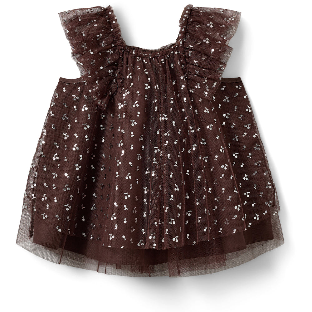 Upptäck charmen med Sofie Schnoor Brown BlossomSB-klänningen, perfekt för alla små fashionista. Den här klänningen är gjord i mjuk tyll prydd med små guldkörsbär som ger en touch av magi. Designen inkluderar volanger på axlarna, vilket ger ett lekfullt och elegant utseende. Klänningens bekväma passform och stil säkerställer att den är både bekväm och snygg för sociala evenemang eller lek. Material: 100% Polyester Tvättråd: Kom ihåg att följa tvätt- och användarinstruktioner Klänning i tyll med små guldkörsbär Volanger på axlarna