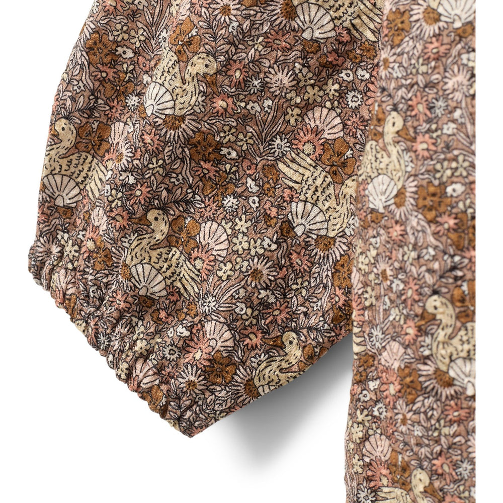 Upptäck charmen med Sofie Schnoor Brown KristaSB Blouse som ger naturens skönhet till vardagsbruk. Den här blusen med sitt söta bruna mönster av blommor och små ankor kommer att bli en favorit i varje liten modedesigners garderob. Långa ärmar och en bekväm lös passform med elastisk kant i nacken och ärmarna garanterar komfort hela dagen när du leker eller utforskar. Oemotståndligt söt och praktisk för alla tillfällen!