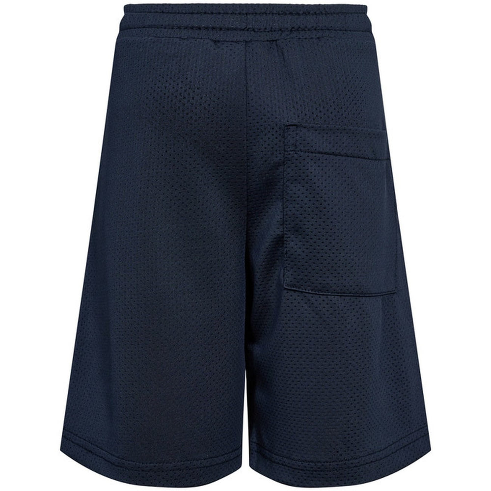 Oversized shorts i mörkblått meshmaterial med resår och knytband i midjan. Brandtak på vänster ben. Tillverkad av 92% polyester och 8% spandex. Följ tvätt- och användningsinstruktionerna för bästa resultat. Perfekt för lek och skoj!