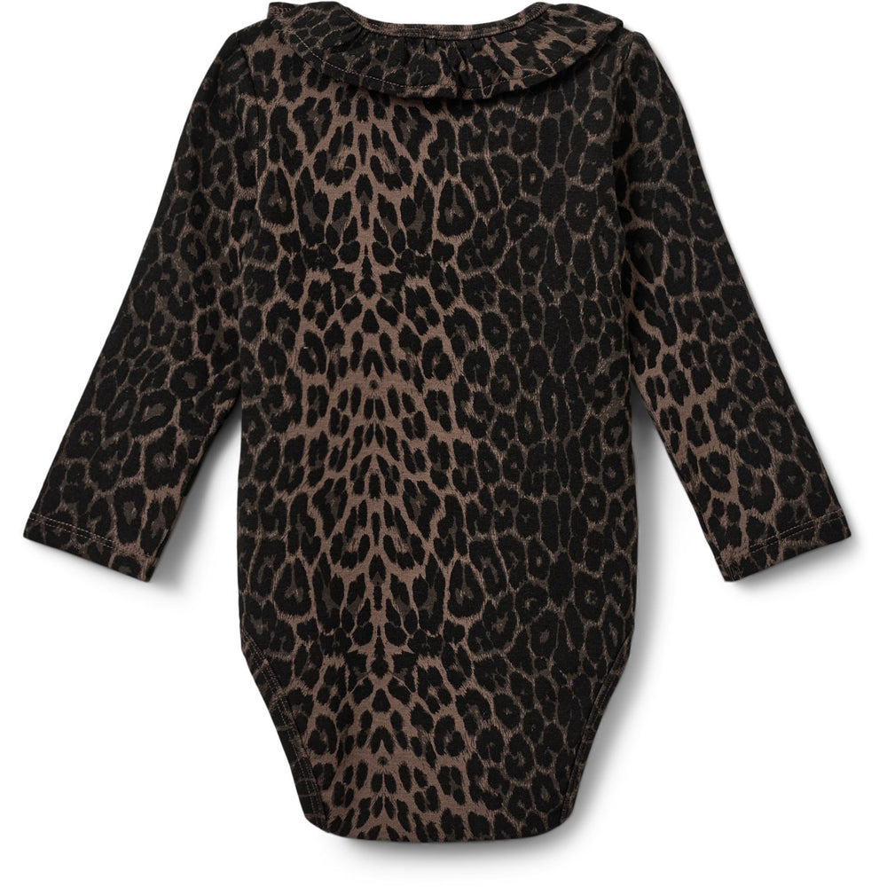- Extra: • Body med leopardmönster • Långa ärmar, rund halsringning med volangdetaljer • Tryckknappsstängning i nederkant