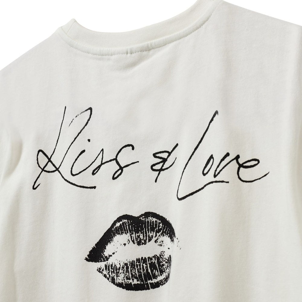 Upplev den perfekta kombinationen av stil och komfort med Sofie Schnoor Snow White ZenaSY T-shirt, designad speciellt för barn. Denna T-shirt är tillverkad av högkvalitativt material som garanterar hållbarhet och mjukhet. Med dess iögonfallande vit färg och unika mönster är den inte bara chic utan också lekfull och barnvänlig. T-shirten erbjuder en avslappnad passform som gör den idealisk för alla barns aktiviteter, samtidigt som den är enkel att sköta och behåller formen efter tvätt. Låt ditt barn utforska sin värld med stil och komfort! Material: 100% Bomull Tvättråd: Kom ihåg att följa tvätt- och användarinstruktioner T-shirt Klassisk passform Rund halsringning Tryck av en kyssande mun på framsidan Tryck med texten "Kiss of love" på baksidan och en kyssande mun