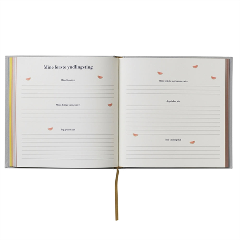 "Mina första år – Minnen och minnen" är en unik barnbok för alla de speciella ögonblicken från barnets första dagar, som du måste komma ihåg att skriva ner innan tiden flyger iväg med dem. Hur känns det när du ser det lilla hjärtat slå för första gången? När bubblorna i magen förvandlas till små, mjuka sparkar, och när tiden har gått och förlossningsdatumet har nåtts? Vilka är barnets första ord, namnet på favoritnallebjörnen och titeln på boken ni älskar att läsa tillsammans? Boken är full av relevanta frågor om allt från graviditet till barnets första gång och ger möjlighet att skriva ner alla tankar om den övergripande kärleken som växer med barnet. När den är klar kommer "mina första år - minnen och minnen" att vara en minnesvärd skattkammare av ord och bilder som kommer att vårdas i många år framöver. "Mina första år - minnen och minnen" finns även i en beige och en rosa version.