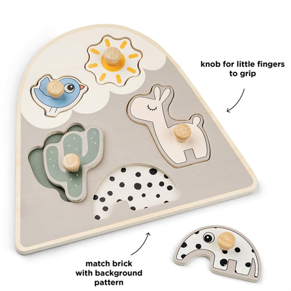 Upplev glädjen i att se ditt barn utveckla sina färdigheter med Done by Deer Pind Puslespil Lalee Sand, ett perfekt pussel för de yngsta familjemedlemmarna. Detta underbart utformade pussel kombinerar säkerhet och lärande i en charmig sandfärgad palett som fångar barnets intresse.
