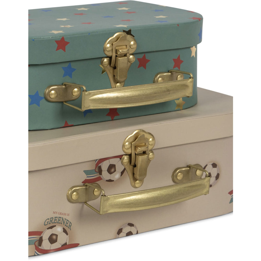 Upptäck Konges Sløjd Off White/Kick It 2-pack Resväskor i FSC-certifierad kartong, designade för att inspirera barnens fantasi. Dessa charmiga lekväskor, med robusta metallhandtag, kommer i två storlekar där den mindre enkelt ryms i den större. De erbjuder inte bara en praktisk förvaringslösning för barnens små skatter utan är också ett stilsäkert inslag i barnrummet som stimulerar till lek och lärande. Idealiska för små upptäckare! Material: Handtag av kartong Metall Certifieringar: FSC MIX CREDIT