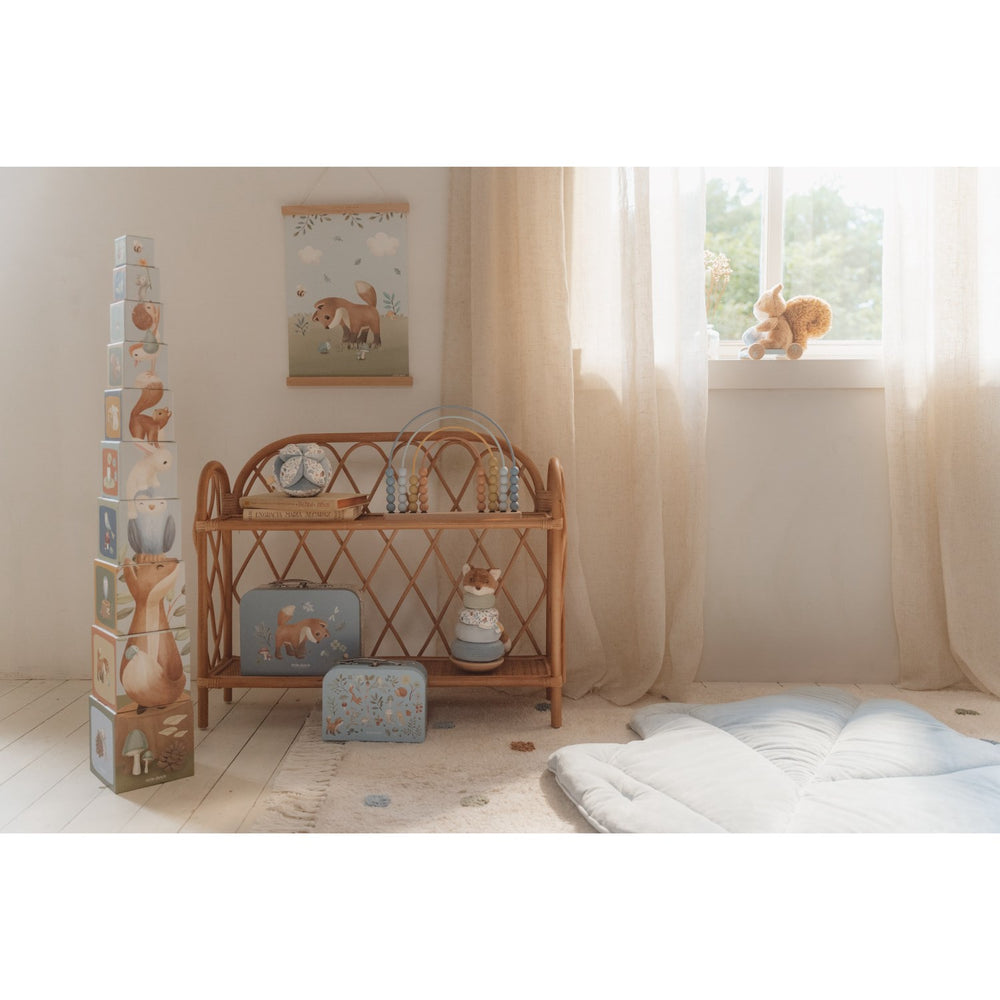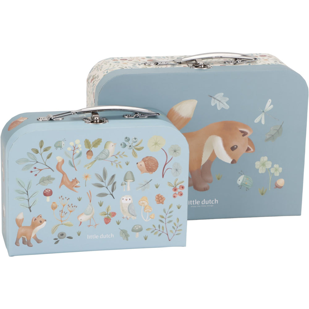 Ge dina barn möjligheten att utforska med Little Dutch Forest Friends Blue Kuffertsæt! Denna charmiga duo av resväskor pryds av bedårande rävillustrationer och härliga inre tryck som stimulerar barnets fantasi. Klassiska metallhandtag och säkra lås gör den lätt och trygg att hantera för de små. Idealisk för att förvara barnens leksaker och spel, kombinerar detta set funktionalitet med ett tilltalande utseende och bidrar till både lek och organisation i barnrummet.