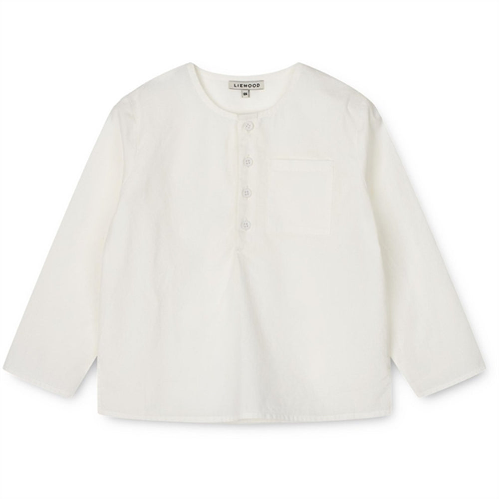 Upplev komfort och stil med Liewood Houston Skjortan i Crisp White. Denna kraglösa tröja är designad med en avslappnad passform, perfekt för sommarens varma dagar. Tillverkad av 100% ekologiskt vävd bomull, garanterar den både andningsförmåga och lätthet. Skjortan har en praktisk 3-knapps släkt framtill samt en diskret bröstficka. Sidslitsarna i fållen tillåter ett ledigt fall som enkelt kan kombineras med shorts eller bomulls-/canvasbyxor, vilket gör den till en mångsidig del av varje barns garderob.