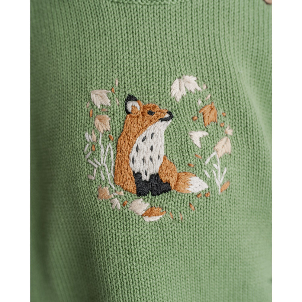 Klä ditt barn i den charmiga Hanevild Shale Green Linus Blusen, en stickad tröja med en livlig räv broderad på bröstet som tillför en gnutta lekfullhet. Tillverkad av 100 % högkvalitativ ekologisk bomull, är denna tröja inte bara stilfull utan också mjuk och behaglig för känslig barnhud. Dess hållbara material gör den idealisk för vardagsbruk och enkel att sköta; den kan tvättas i maskin på 30 grader men bör torkas platt för att behålla formen. En perfekt kombination av fashion och funktion för ditt barns garderob.