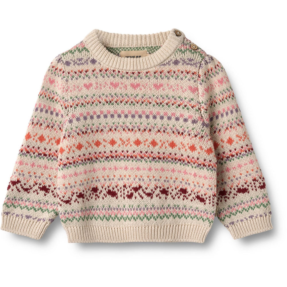 Ge din lilla älskling värme och komfort med Wheat Multi Jaquard Pullover Olga. Denna långärmade tröja är skapt av 100% ekologisk bomull, vilket garanterar en mjuk och skön upplevelse för känslig barnhud. Den normala passformen, tillsammans med ribbade detaljer vid halsringning, ärmavslut och nederkant, ger en optimal passform medan raglanärmarna erbjuder rörelsefrihet. Den unika jacquarddesignen lägger till en charmig estetisk touch som gör denna tröja lika stilfull som bekväm. En praktisk öppning vid vänster axel underlättar påklädning. Allt detta i ett klädesplagg som både är OEKO-TEX® Standard 100 certifierat och GOTS-certifierat, vilket säkerställer att tröjan inte bara är hållbar utan även framställd med höga miljömässiga och sociala krav. Idealisk för allt från lekfulla dagar hemma till utflykter i det fria. Ge din småtting det bästa med Wheats stickade tröja – en smart kombination av stil, komfort och hållbarhet.