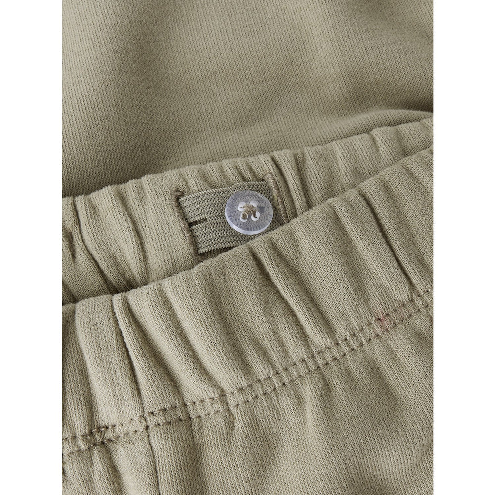 Byxorna kommer i en lugn färg med diskreta detaljer såsom sidofickor för praktisk förvaring av små skatter. De är designade med både barnets aktiviteter och komfort i åtanke.