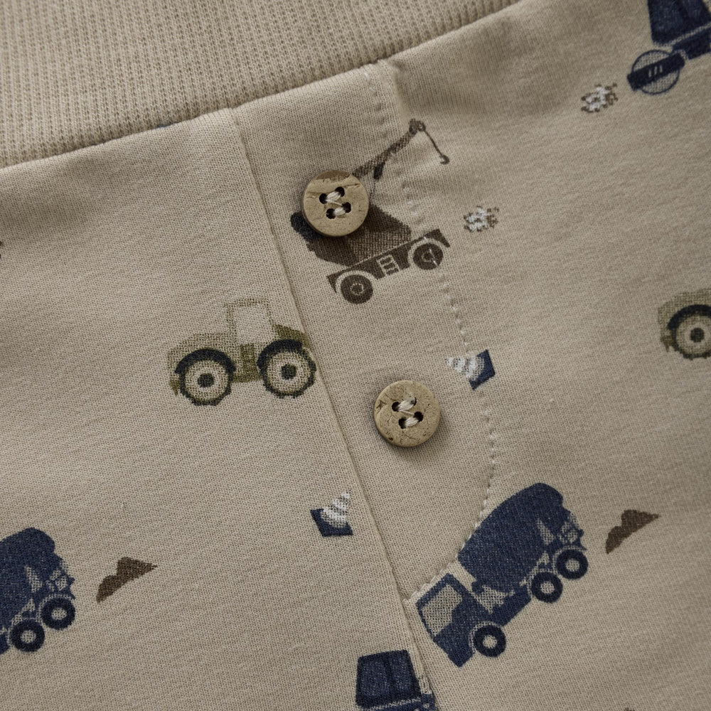 Klä ditt barn i bekväma och stilsäkra Minymo Oxford Tan Byxor AOP Sweat. Dessa träningsbyxor är tillverkade i en mjuk viskosblandning som erbjuder enastående komfort, perfekt för barnets aktiva liv. De har en charmig design med ett heltäckande tryck av olika fordon, kombinerat med dekorativa knappar som lägger en extra stilfull touch. Med resår i både midja och vid anklarna får dessa byxor en perfekt passform som följer barnets rörelser utan att skava. OEKO-TEX® STANDARD 100-certifieringen säkerställer att byxorna är fria från skadliga ämnen, vilket är tryggt för ditt barns hud och hälsa. Idealisk för allt från lek i parken till avslappnad hemmamiljö.