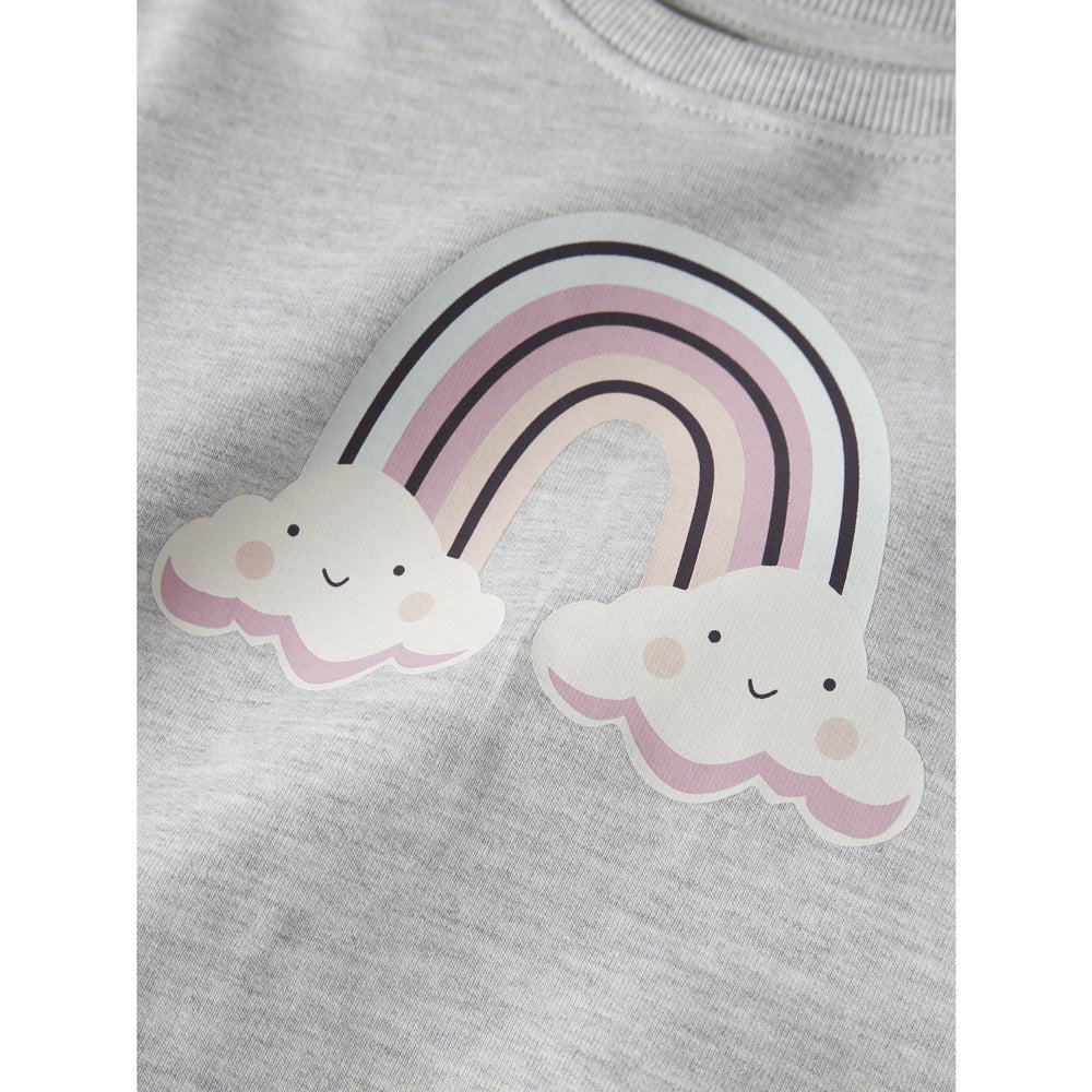 Sweatshirten är detaljrikt utformad med långa ärmar, en klassisk rund hals och en ribbad fåll som skapar en fin silhuett samtidigt som den behåller sin form. Dessutom är plagget försedd med ett diskret pigmenttryck som ger en subtil detalj mot det ljusa tyget. Den normala passformen säkerställer att tröjan sitter bekvämt utan att begränsa barnets rörelsefrihet.