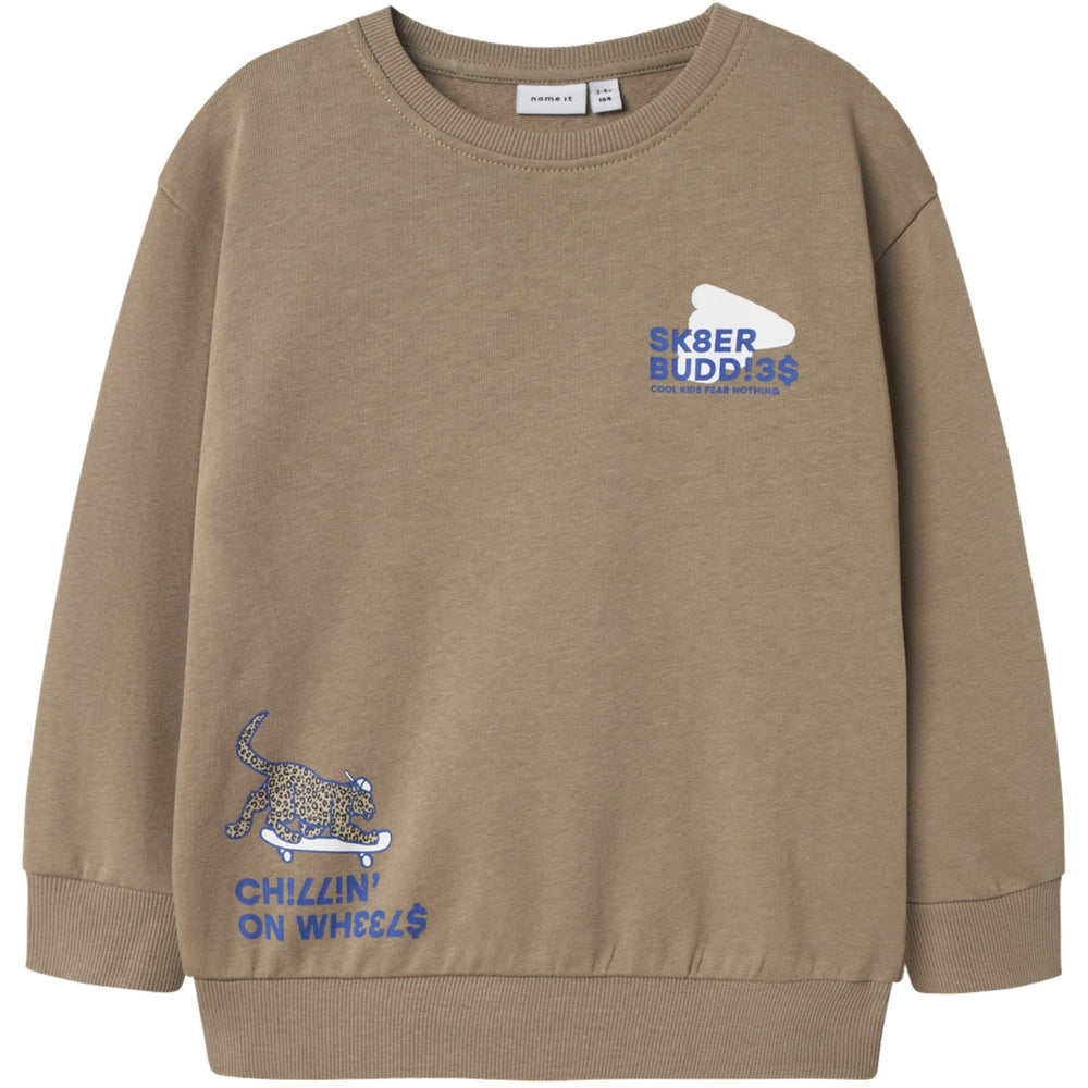 Upptäck den stiliga och bekväma Name It Roasted Cashew Nmmorling Ls Nreg Swe Bru Bf-sweatshirten – en perfekt komponent i din lilla äventyrares garderob för säsongen! Denna tröja, tillverkad i mjuk borstad svettduk med mjuk insida, erbjuder både komfort och varaktighet. Med en normal passform, rund hals och långa ärmars design är den idealisk för alla barns aktiva lekar. Pigmenttrycket på tröjan tillför en unik touch utan att kompromissa med känslan. Ribbade fållar ger extra detaljer och hållbarhet. Tillverkad helt i bomull, är den lätt att sköta och håller ditt barn varmt och bekvämt i alla deras äventyr.