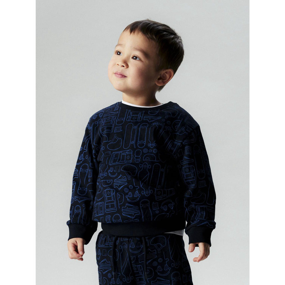 Upptäck våra charmiga och behagliga sweatshirts från Name It, perfekta för att ge ditt barn en stilfull och avslappnad look. Varje tröja är tillverkad av borstad svettduk med en mjukt borstad insida som erbjuder ultimat komfort. Med långa ärmar, rund hals och ribbad fåll kombinerar dessa tröjor funktionalitet med stil. Designen kännetecknas av ett lekfullt mönster som upprepas över hela ytan, vilket gör varje tröja unik. Tröjorna finns i en normal passform som passar de flesta barn och är framställda av bomull, vilket gör dem lätta att sköta. De här sweatshirts är inte bara sköna att bära utan också praktiska och hållbara, perfekta för både lek och avslappning.