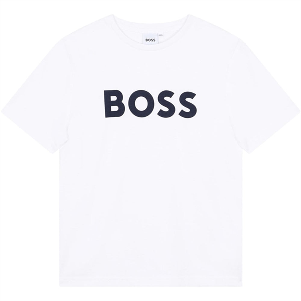Upptäck den stilrena elegansen med Hugo Boss T-shirt i klassiskt vitt. Tillverkad i högkvalitativt material som garanterar både komfort och hållbarhet. Denna T-shirt är perfekt för varje barns garderob med sin rena design och mjuka passform. Lätt att sköta och idealisk för dagligt bruk.