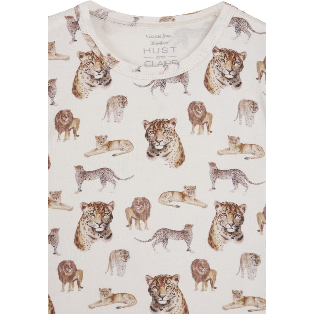 Upptäck de mjuka och ombonade nattkläderna från Hust & Claire! Nu presenterar vi ”Austin Sovkläder” i färgen White Sand, designade för att ge dina barn den ultimata komforten under nattetid. Tillverkade av stretchig viskos från bambu är dessa sovkläder otroligt mjuka mot huden, perfekta för känslig barnhud. Med en charmig design som inkluderar ett lekfullt djurtryck, vilket säkerligen kommer att glädja de små.