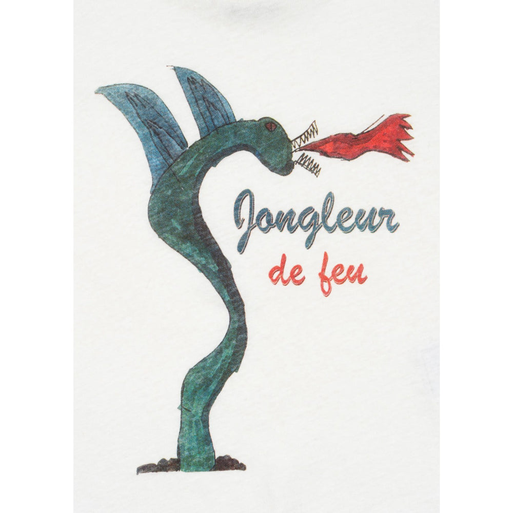 Upplev komfort och stil med Konges Sløjd Antique White RHW X KS Jongleur Tee Ocs. Denna klassiska t-shirt är tillverkad i mjuk ekologisk bomull och pryds av en unik drakillustration framtagen av Rosies son, Jack. I en lugn antikvit färg med lekfulla detaljer erbjuder den en perfekt kombination av funktionalitet och trendig design. Idealisk för vardagsbruk tack vare sitt sköna material och lättskötta egenskaper, gör den här tröjan till det perfekta valet för ditt barns garderob.