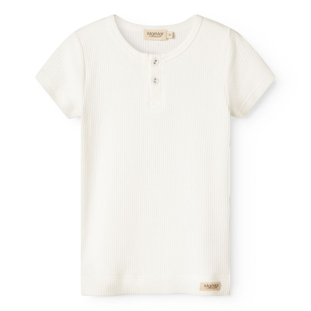 Upptäck vår mjuka, kortärmade MarMar Modal Gentle White T-shirt, perfekt för ditt barns vardag. T-shirten är tillverkad i behaglig modalblandning, designad med praktiska knappar för enkel påklädning. Dess rena vita färg och minimalistiska stil gör den lätt att matcha med andra plagg. T-shirten erbjuder komfort och rörelsefrihet, vilket är idealiskt för lek och äventyr. Lätt att sköta, den håller sig fin tvätt efter tvätt.