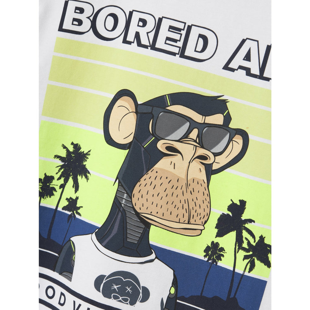 Ge ditt barns stil en fräsch touch med denna unika T-shirt från Name It. Tillverkad i mjukt och stretchigt jersey-material, erbjuder denna topp optimal rörelsefrihet och komfort, perfekt för lek och umgänge. Designen kännetecknas av det kreativa trycket "Bored Of Directors" från den välkända NFT-serien Bored Ape Yacht Club, som lägger till en lekfull och modern twist. Tröjan kommer i en härlig nyans av Cloud Dancer och har en avslappnad standardpassform med korta ärmar och rund hals som bidrar till både stil och funktionalitet. Den enkla skötseln gör denna t-shirt till ett praktiskt val för daglig användning, där barnets komfort och rörlighet står i fokus.
