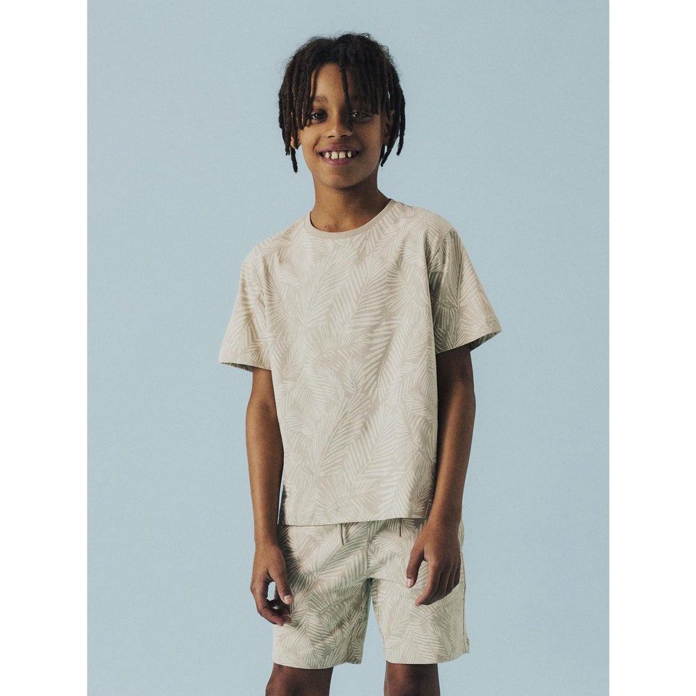 Uppdatera din lilla äventyrarens garderob med Name It Island Fossil Nkmjivan Ss Nreg Topp Pb. Denna t-shirt i mjuk jersey är perfekt både för lekfulla dagar och festligare tillfällen. Tillverkad i ett stretchigt bomullsmaterial, erbjuder den både komfort och rörelsefrihet tack vare sin normala passform och korta ärmar. Det unika trycket som upprepas över hela ytan tillför en lekfull touch. Runt halsen ger en klassisk och bekväm känsla, vilket gör denna topp till ett utmärkt val för alla barn som älskar att röra sig fritt och med stil.