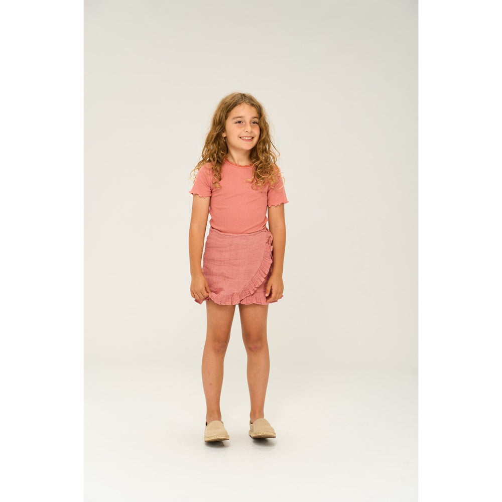 Upplev den underbara kombinationen av stil och komfort med vår "New Old Rose Lotus Rib T-Shirt" – perfekt för ditt barns vardagsäventyr! Tillverkad i mjukt och hållbart ribbat material garanterar detta plagg en behaglig passform och långvarig användning.