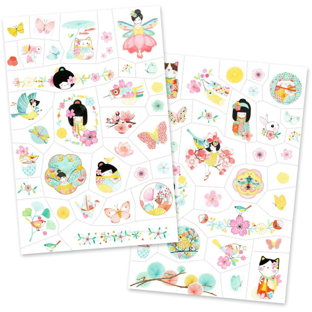 Välkommen till en värld av färg och fantasi med våra Djeco Tattoos, inspirerade av de vackra körsbärsblommorna som sveper över den japanska våren. Dessa tillfälliga tatueringar är perfekta för barn som önskar lite extra flair i vardagen! Varje set innehåller två förskurna ark med gnuggisar som är lätta att applicera. Ett enkelt tryck med lite vatten är allt som behövs, och vips så är de redo att förgylla ditt barns hud med säkra och dermatologiskt testade motiv.