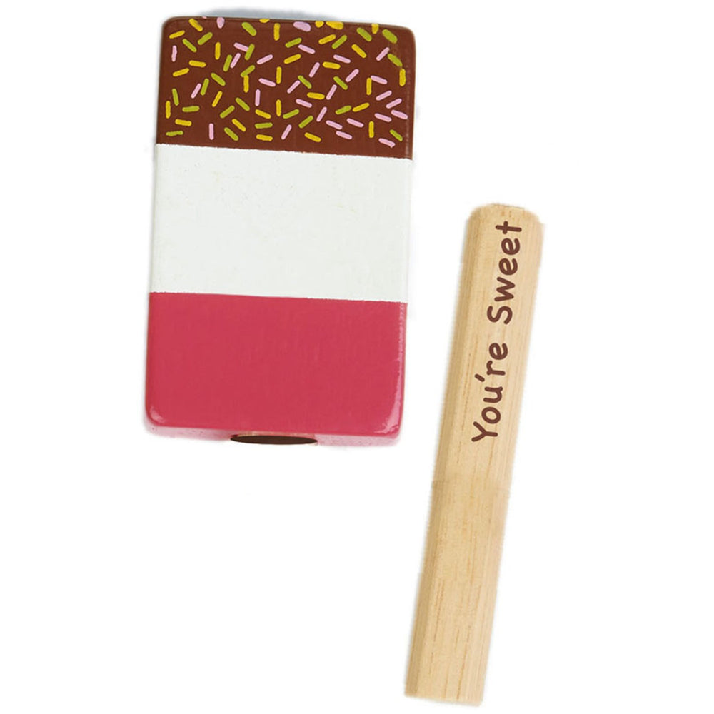 Upptäck glädjen med Tender Leaf Isbutik, den perfekta träleksaken för ditt barn! Denna charmiga leksak inkluderar ett set med sex lekfulla och inbjudande träglassar i ett spektrum av vackra färger, förvarade i en praktisk hållare. Tillverkade av högkvalitativt, slitstarkt gummiträ är dessa isglassar inte bara robusta och säkra för barn, utan även lätta att hantera och rengöra.