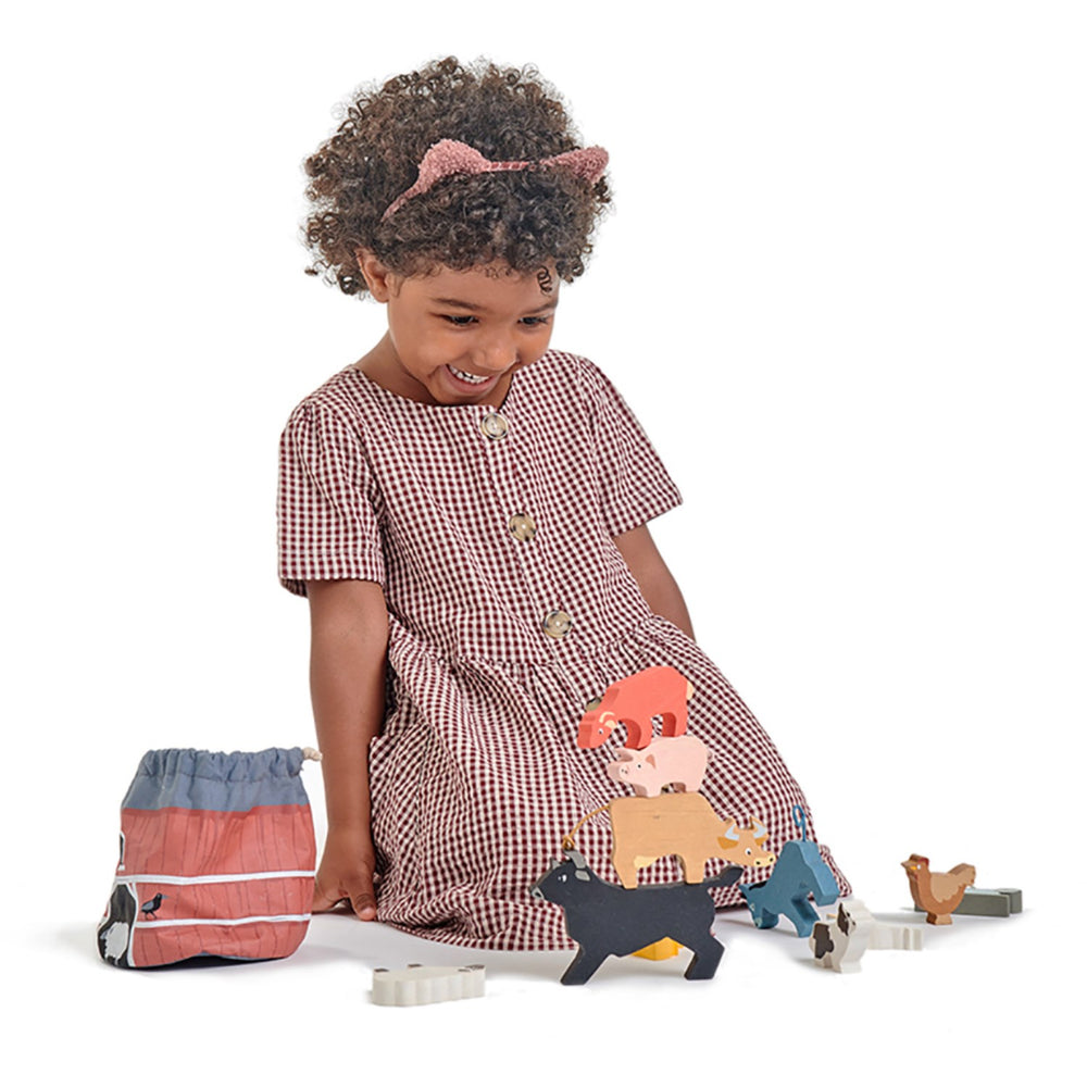 Upptäck det klassiska stapelklosssetet "Tender Leaf Stabledyr - Gården", perfekt anpassat för ditt barns säkerhet och utveckling. Med dess charmiga bondgårdstema ger detta träleksaksset en trygg och varaktig lekupplevelse. Setet är vackert designat med lantliga motiv rikt målade på varje massiv träkloss, ideellt för små händer att greppa och stapla.
