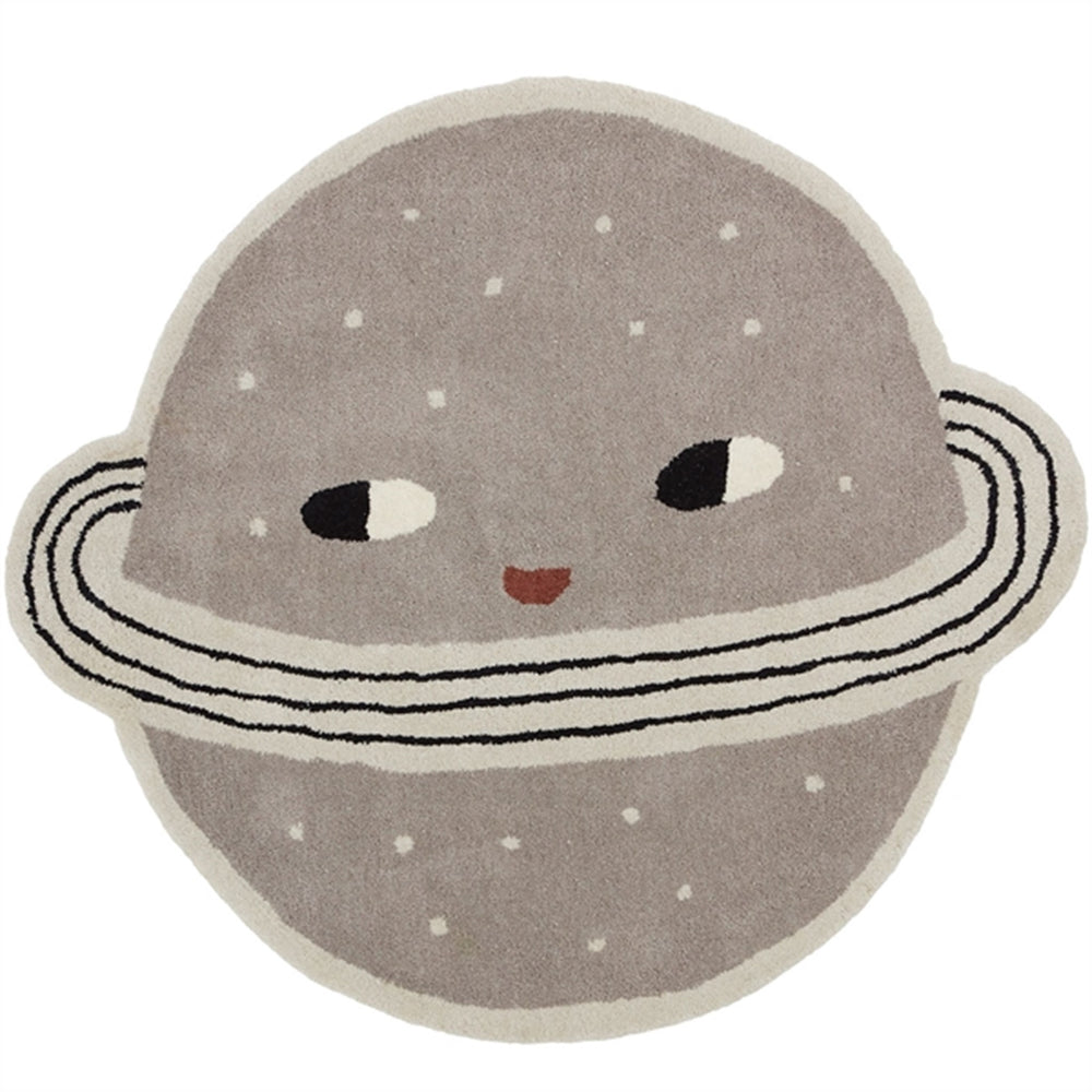 Superfin och rolig matta till barnrummet. Den är formad som en söt planet. Mattan är i vackra neutrala grå nyanser. Det kommer att bli supercoolt för barnrummet.