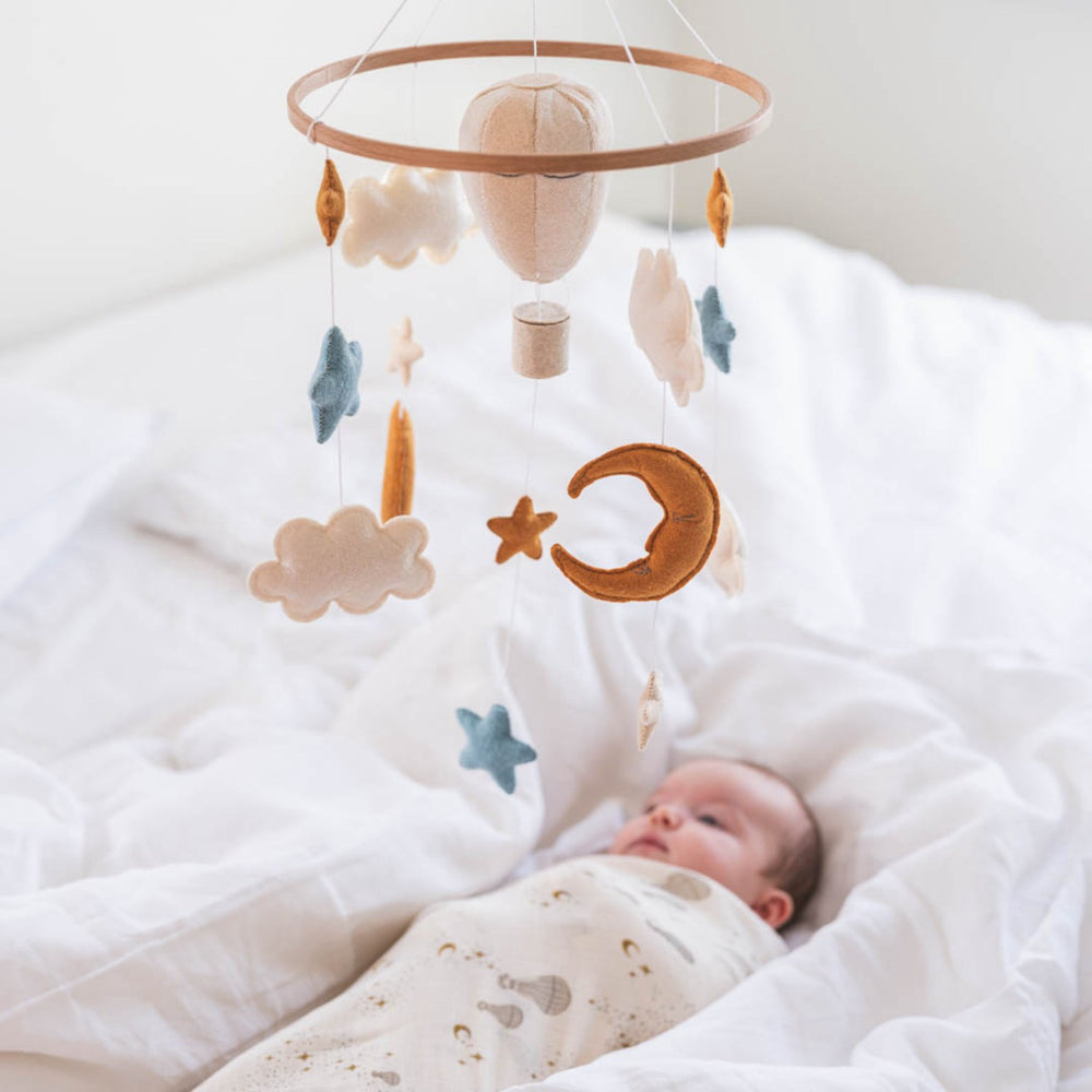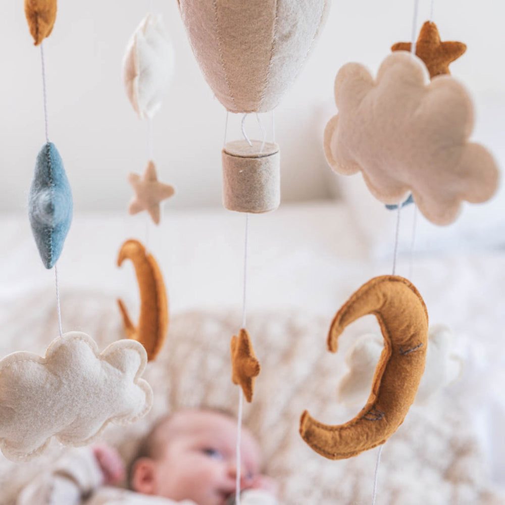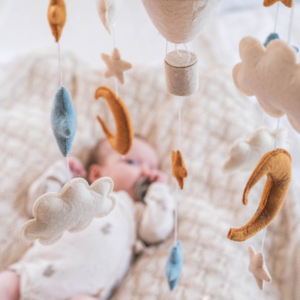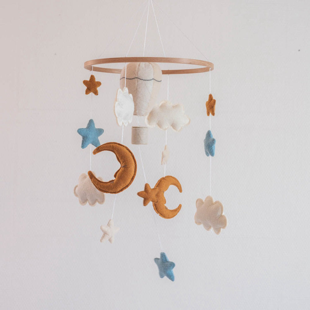 Upptäck den charmiga "That's Mine Luftballong Blace Mobil," den perfekta tillägget för varje barnkammare. Denna mobil är tillverkad av 100 % polyesterfilt, vilket inte bara ger en mjuk känsla utan också säkerställer hållbarhet och lätthet i underhåll. Den drömlika designen med luftballonger bidrar till en fantasifull atmosfär som stimulerar barnets visuella sinne och kreativitet.