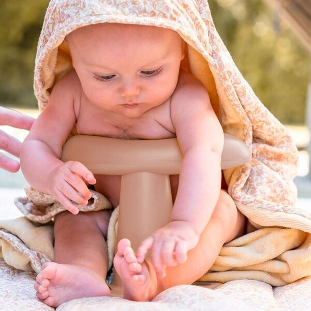 Upplev tryggt och roligt bad med vår "That's Mine Badestol Brown" som är idealisk för små äventyrare. Vår babybadstol är omtyckt för sin stabilitet och komfort och är designad för barn som kan sitta upp själva. Den är lätt att använda och rengöra, vilket gör den perfekt för dagar på stranden eller lek i babypoolen. Med måtten 31B x 39,5L cm erbjuder den både funktionalitet och nöje. Badstolen garanterar inte bara säkra stunder vid vattnet men stimulerar också ditt barns sinnen genom lekfulla badstunder.