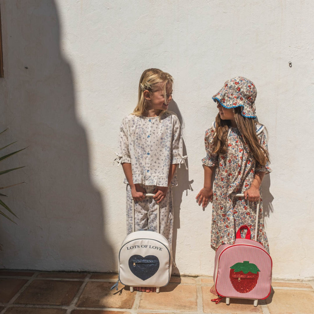 Det justerbara handtaget anpassar sig enkelt så att både små och stora äventyrare kan dra vagnen, vilket ökar dess mångsidighet. Resväskans mått är idealiska för barn: 37 cm i höjd med handtaget nedfällt och 54 cm när det är uppfällt. Detta ger rätt balans mellan storlek och användbarhet, perfekt för familjens resor eller vardagliga äventyr. Låt ditt barn välja sin favorit bland våra charmiga motiv och se dem stolt dra sin egen vagn på nästa resa.