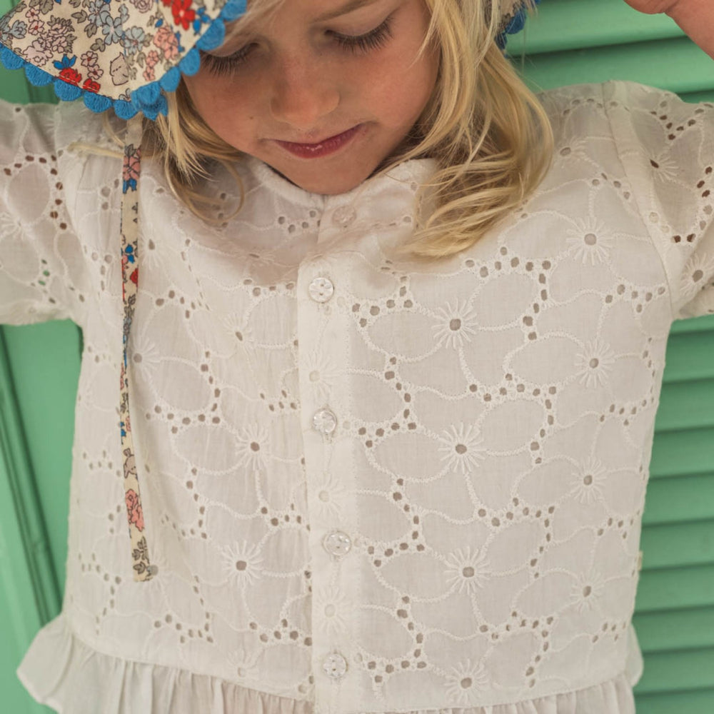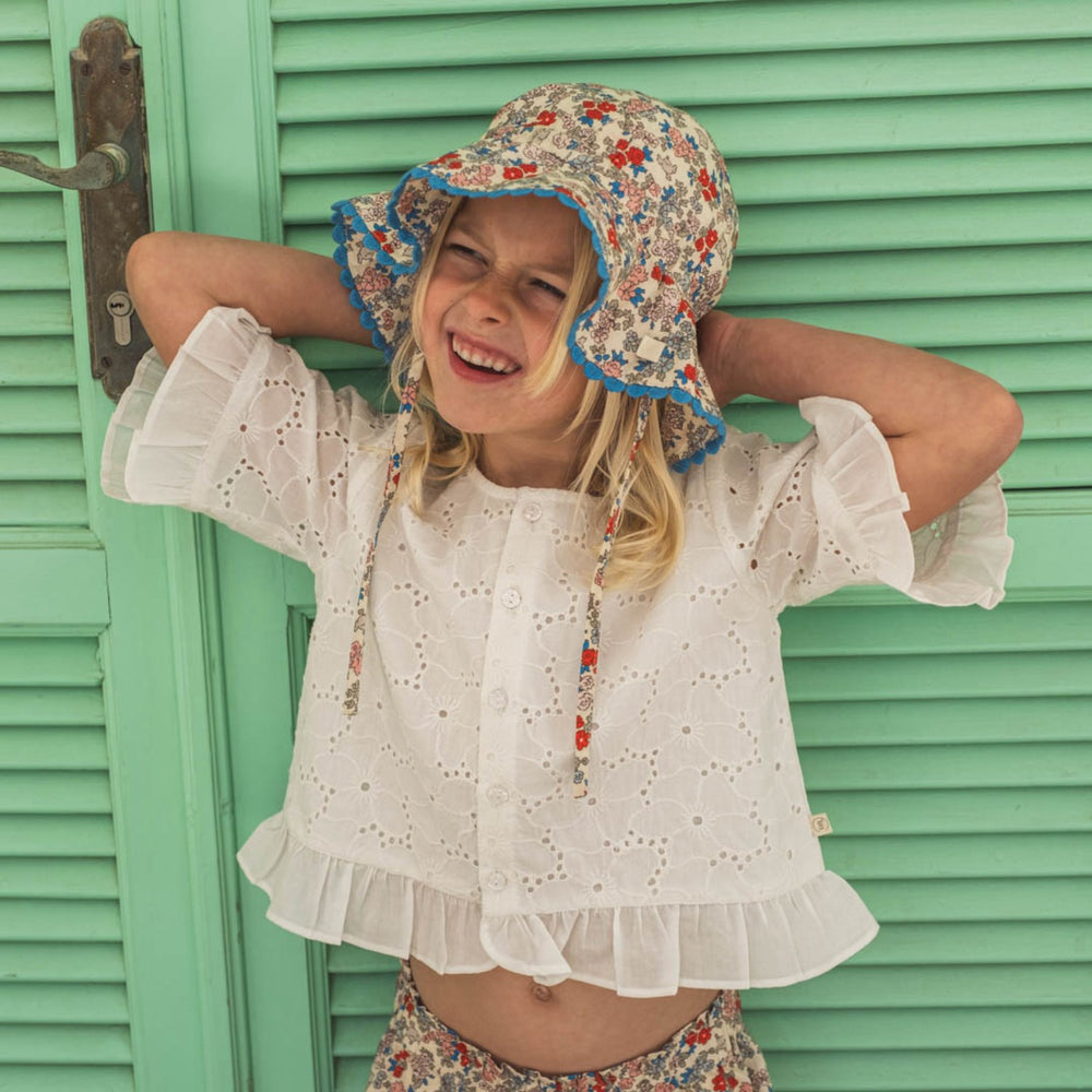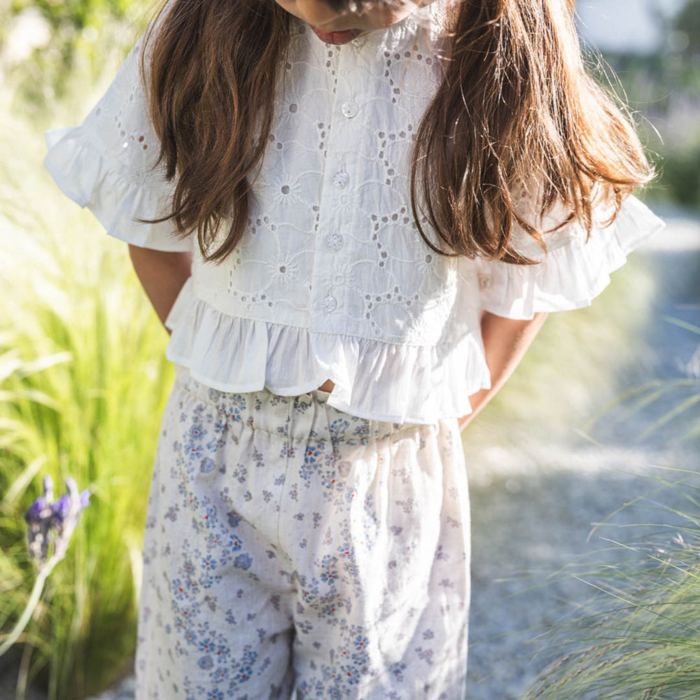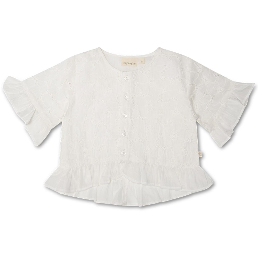 Upplev sommarens charm med "That's Mine Brilliant White Ibbi Skjorta". Denna bedårande sommartopp kännetecknas av sina eleganta volangdetaljer och praktiska knappar framtill. Skjortan har lösa ärmar som slutar ovanför armbågen, vilket skapar en ledig och bekväm känsla. Framtagen i en ljus, neutral vit färg, passar den utmärkt till många olika outfitkombinationer. Den är designad för att vara både stilren och funktionell för barnens lekfulla sommardagar.