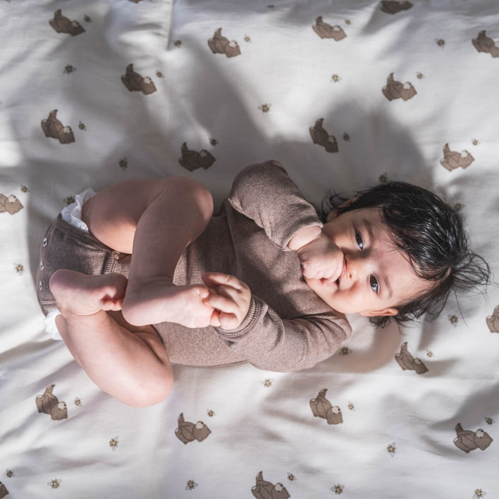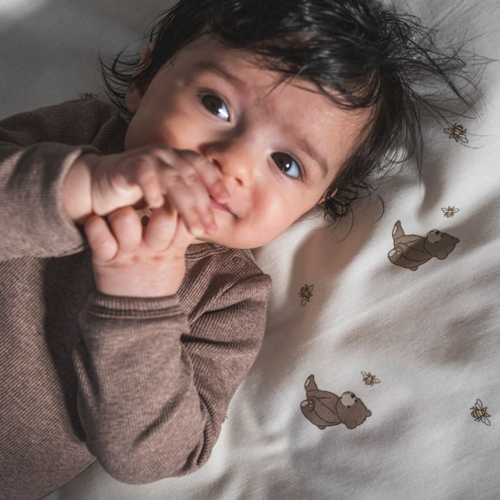 Utforska vår nya "Petra" bodystocking i färgen brown melange från That's Mine, perfekt för din lilla skatt. Denna mjuka bodystocking är tillverkad av 95% ekologisk bomull och 5% elastan, vilket bjuder på härlig stretch och komfort. Med sin smarta design inkluderar den extra knappar längst ner som gör att plagget kan växa med barnet. Idealisk för både lek och vila och lätt att sköta – bara att tvätta i maskin.