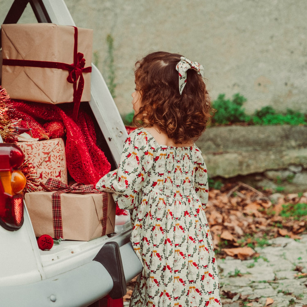 Låt din lilla stjärna lysa i "Sarah Klänning" från That's Mine, designad för att förgylla julfirandet. Denna charmiga klänning är framtagen med en elastisk smock i ryggen, vilket gör den enkel att ta på och bekväm att bära under långa familjesammankomster. Tillverkad med en generös bredd som garanterar rörelsefrihet, och med detaljer såsom resår vid axlarna och ärmsluten för en stilsäker passform. Klänningens festliga design och den perfekta passformen gör den till en idealisk julklänning för alla festliga tillfällen.
