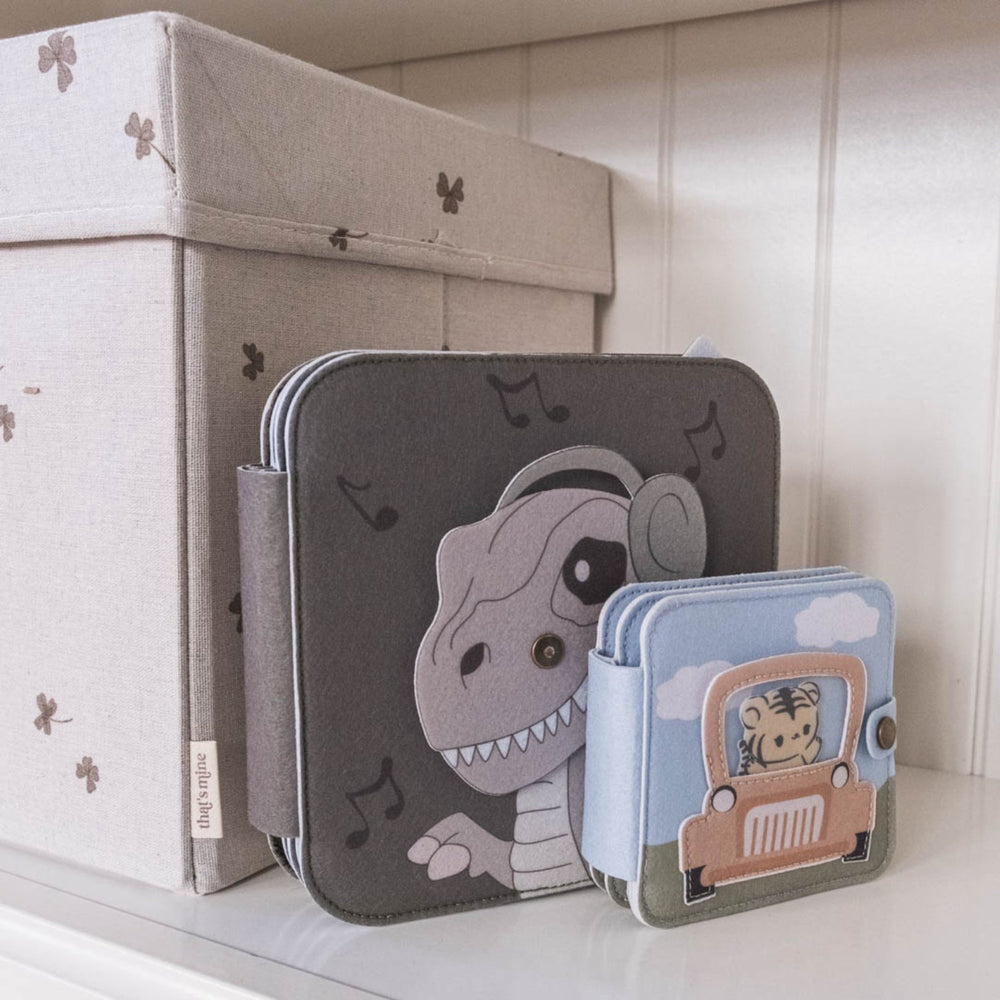 Upptäck den charmiga "Dino esta Emory" filtaktivitetsboken från Thats Mine, en idealisk lekkamrat för de små som utforskar världen. Denna underbara tygbok är designad för att stimulera barnets sensoriska färdigheter genom en serie interaktiva sidor som var och en är fylld med engagerande och lärorika aktiviteter. Säkerhet är prioriteten i dessa böcker, med mjuka, barnsäkra material och starka sömmar som tål nyfikna små händer. Den pedagogiska aspekten lyser starkt med aktiviteter som räkning, sortering samt utforskning av färger och former, vilka alla bidrar till utvecklingen av kognitiva färdigheter och finmotorik. Boken är anpassad för barn från tidig ålder, vilket gör den till ett perfekt verktyg för att väcka och underhålla barnets intresse under formbara år. Dess portable storlek och tåliga konstruktion gör att den enkelt kan tas med överallt och är enkel att rengöra, vilket säkerställer att boken håller länge, även under frekvent användning. "Dino esta Emory" är inte bara utformad för att vara interaktiv och underhållande utan också för att underlätt storlek, förvaring och underhåll. Ge ditt barn en rolig och utbildande lekstund med denna fantastiska filtaktivitetsbok.
