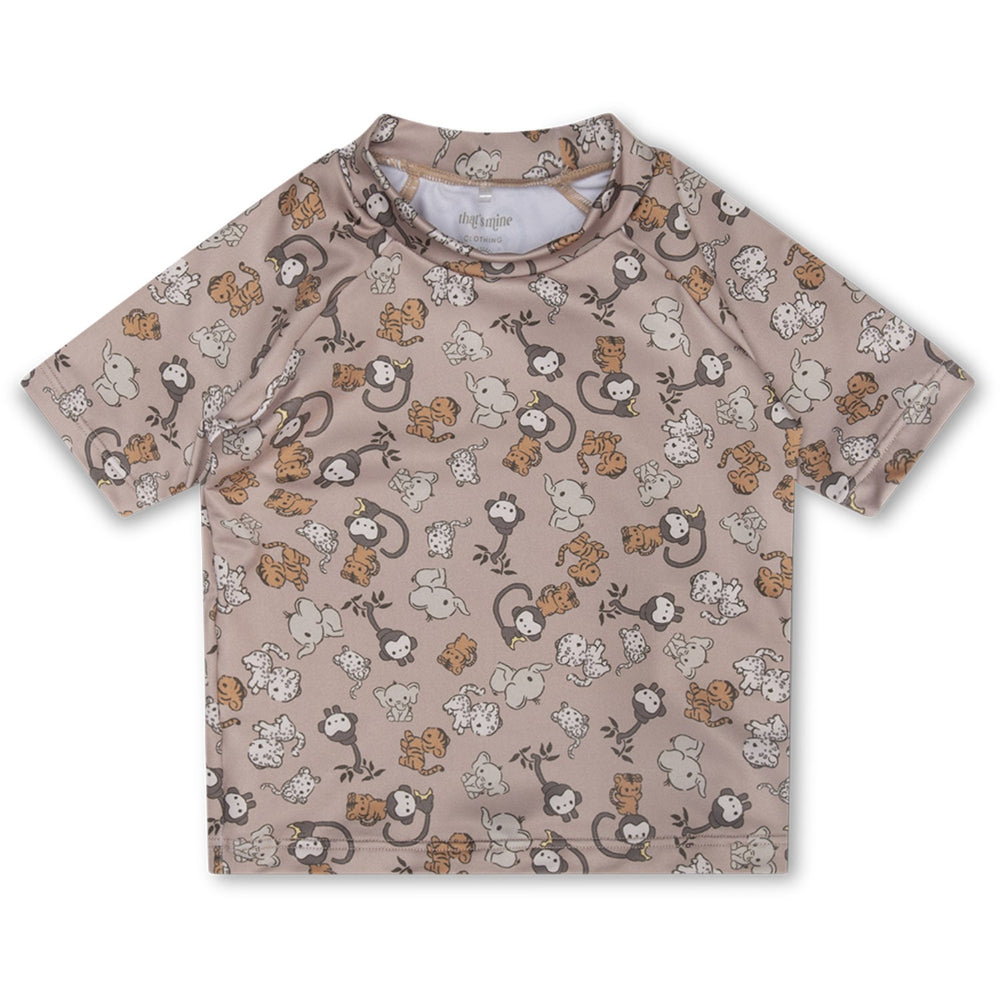 Upptäck "Jungle Friends Sami" simtröjan från That's Mine – perfekt för alla små äventyrare som älskar att leka under solen. Denna charmiga UV-t-shirt är inte bara söt utan också praktisk, med ett UV50-skydd som effektivt värnar om barnets känsliga hud mot solens strålar. Tillverkad av återvunnen polyester, stödjer denna tröja också en mer hållbar modeframtid.